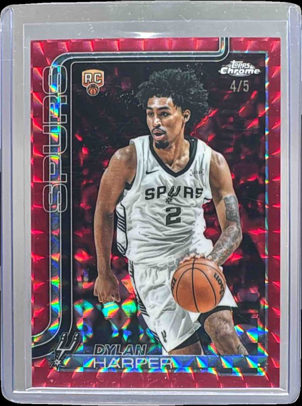 The Dylan Harper 2025 Topps Chrome #252 Red Geometric Refractor /5 Rookie card in Raw condition has not changed in price in the last 30 days and was last sold for $1,725.00 .