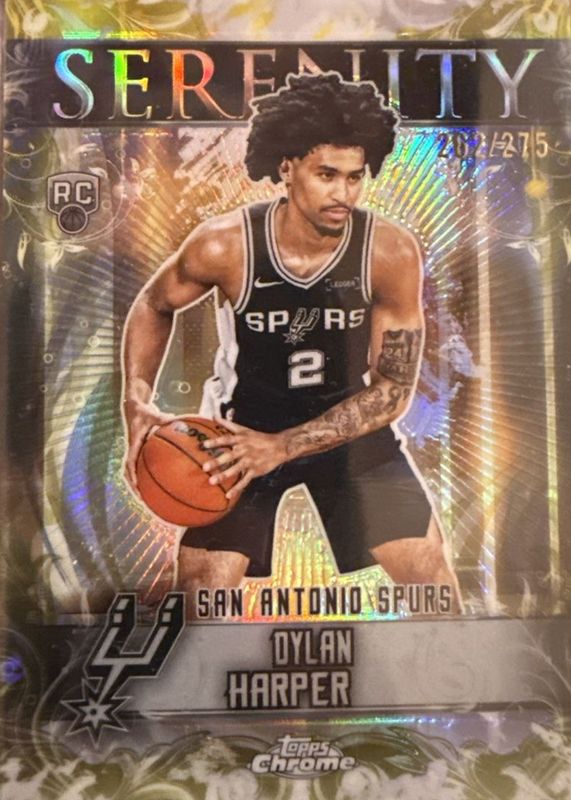 The Dylan Harper 2025 Topps Chrome #SY-12 Serenity - Yellow Refractor /275 Rookie card in Raw condition has moved down -$10.50 (-26.2%) in the last 30 days and was last sold for $29.50 .