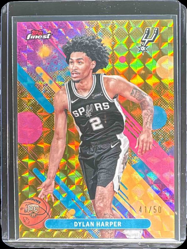 The Dylan Harper 2025 Topps Finest #2 Common - Gold Geometric Refractor /50 Rookie card in Raw condition has moved up $14.50 (+9.8%) in the last 30 days and was last sold for $162.00 .
