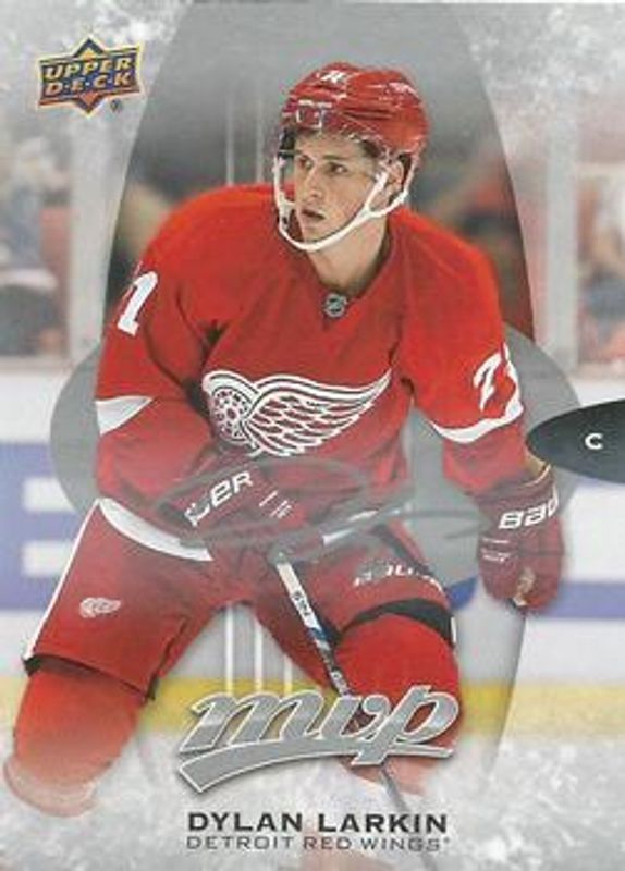 The Dylan Larkin 2016 Upper Deck MVP #125 Silver Script card is 1 of 17 Dylan Larkin's card variations in the 2016 Upper Deck MVP set being tracked by Sports Card Investor, including #341 Base, #125 Base, #125 Colors & Contours, #125 Green Script, and #125 Puzzle Back.