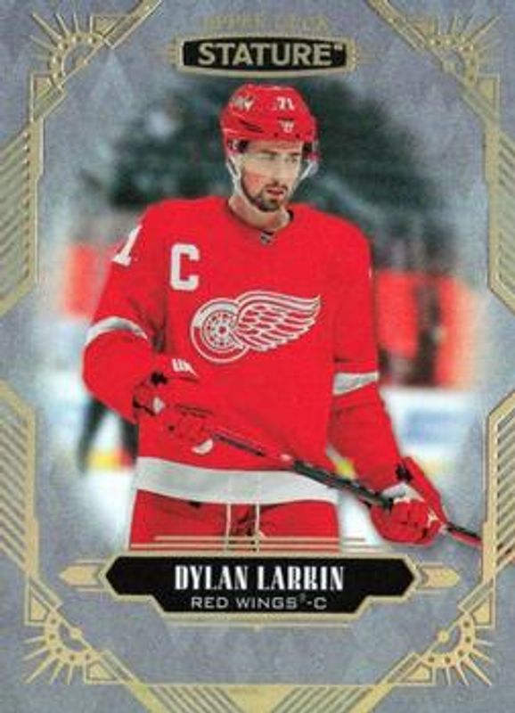 The Dylan Larkin 2020 Upper Deck Stature #19 Base /399 card is 1 of 21 Dylan Larkin's card variations in the 2020 Upper Deck Stature set being tracked by Sports Card Investor, including Green /175, Portrait /99, Red /85, Blue /45, and Portrait Red /25.