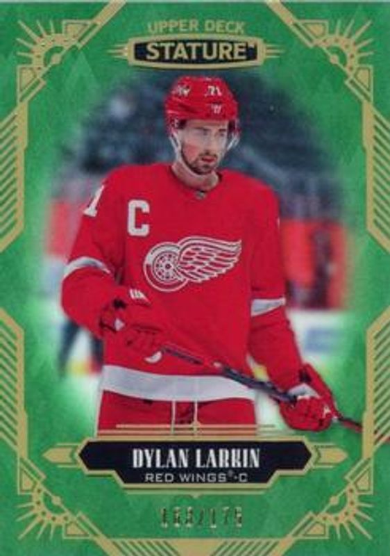 The Dylan Larkin 2020 Upper Deck Stature #19 Green /175 card is 1 of 21 Dylan Larkin's card variations in the 2020 Upper Deck Stature set being tracked by Sports Card Investor, including Base /399, Portrait /99, Red /85, Blue /45, and Portrait Red /25.