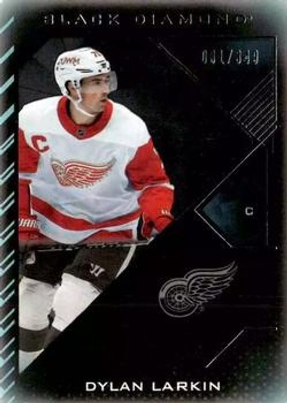 The Dylan Larkin 2021 Upper Deck Black Diamond #BDB-DL Base /349 card is 1 of 7 Dylan Larkin's card variations in the 2021 Upper Deck Black Diamond set being tracked by Sports Card Investor, including Premium Relics /50, Pure Black /50, Diamond Relics /5, Diamond Relics Pure Black /1, and Exquisite Collection Extra Exquisite /10.