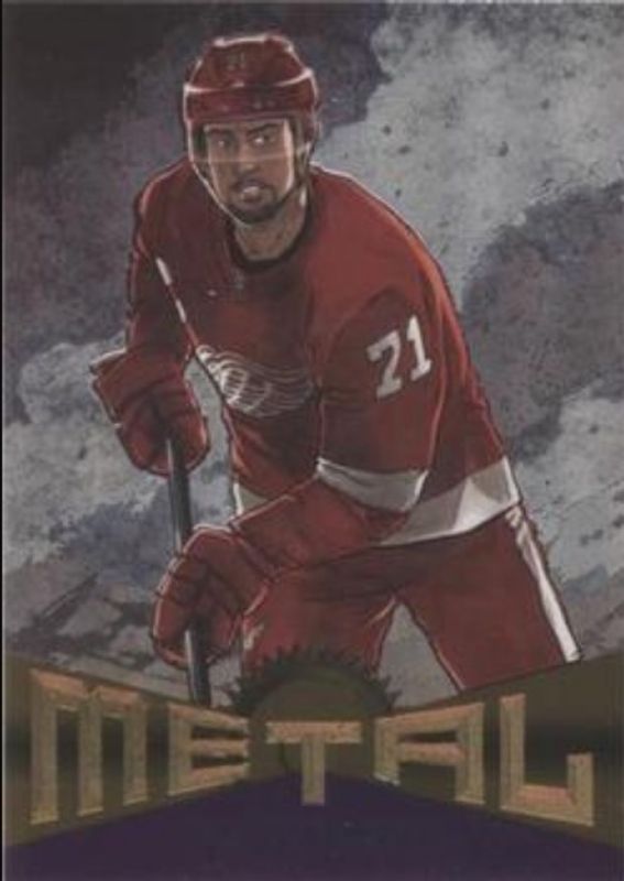 The Dylan Larkin 2022 Metal Universe #RT-19 2013 Retro card is 1 of 24 Dylan Larkin's card variations in the 2022 Metal Universe set being tracked by Sports Card Investor, including Base, Spectrum FX Blue, Spectrum FX Purple /199, Precious Metal Gems Green /100, and Precious Metal Gems Red /100.