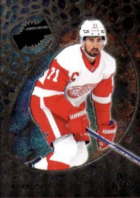 The Dylan Larkin 2022 Metal Universe #83 Base card is 1 of 24 Dylan Larkin's card variations in the 2022 Metal Universe set being tracked by Sports Card Investor, including Spectrum FX Blue, Spectrum FX Purple /199, Precious Metal Gems Green /100, Precious Metal Gems Red /100, and Auto Green FX /10.