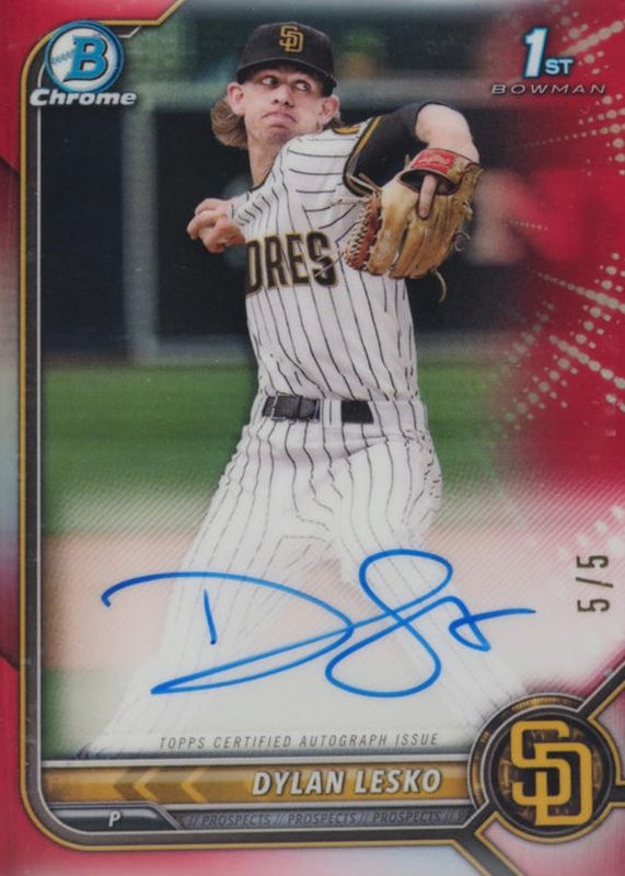 Dylan Lesko 2022 Bowman Draft #CDA-DL Chrome DP Auto - Red Refractor /5 (1st) SGC 10 Price Guide