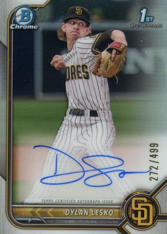 2022 Bowman Draft Dylan Lesko Chrome Pick Auto Refractor /499 1st Padres BW10