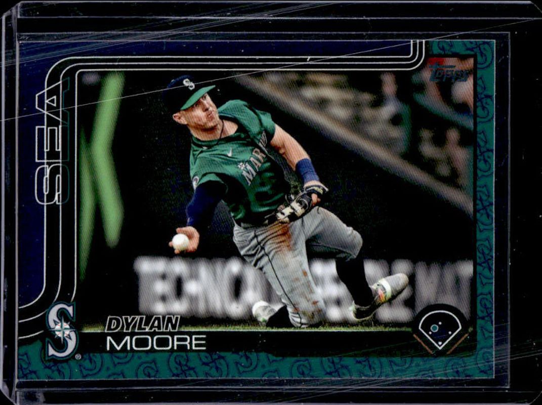 The Dylan Moore 2025 Topps #105 Team Color card is 1 of 63 Dylan Moore's card variations in the 2025 Topps set being tracked by Sports Card Investor, including Base, Aqua Holo Foil, Diamante Foil, Holo Foil, and Pink Diamante Foil.