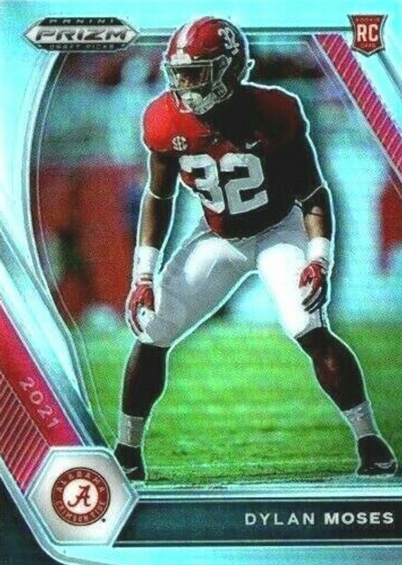 This card is 1 of 10 Dylan Moses' card variations in the 2021 Prizm Draft Picks set being tracked by Sports Card Investor, including Base, All-Americans, All-Americans - Green, All-Americans - Purple Wave, and All-Americans - Silver.