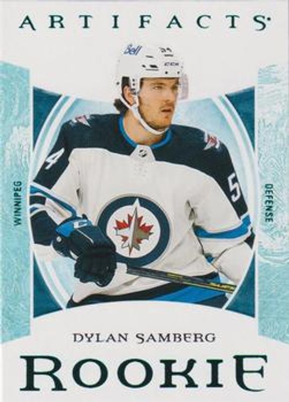 The Dylan Samberg 2022 Upper Deck Artifacts #187 Turquoise Rookie card is 1 of 29 Dylan Samberg's card variations in the 2022 Upper Deck Artifacts set being tracked by Sports Card Investor, including Base /999, Leather, Plexi, Wood, and Ruby /499.