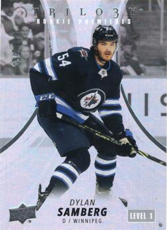 The Dylan Samberg 2022 Upper Deck Trilogy #124 Base /699 Rookie card is 1 of 37 Dylan Samberg's card variations in the 2022 Upper Deck Trilogy set being tracked by Sports Card Investor, including #174 Base /699, #224 Base /699, #124 Black Foil Memorabilia /499, #174 Black Foil Memorabilia /499, and #224 Black Foil Memorabilia /499.