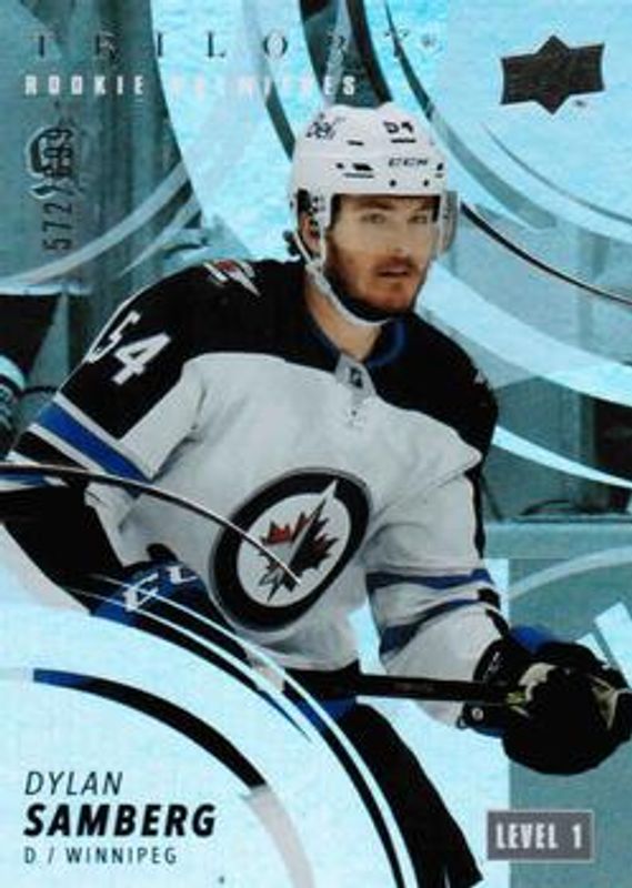 The Dylan Samberg 2022 Upper Deck Trilogy #174 Base /699 Rookie card is 1 of 37 Dylan Samberg's card variations in the 2022 Upper Deck Trilogy set being tracked by Sports Card Investor, including #224 Base /699, #124 Base /699, #124 Black Foil Memorabilia /499, #174 Black Foil Memorabilia /499, and #224 Black Foil Memorabilia /499.