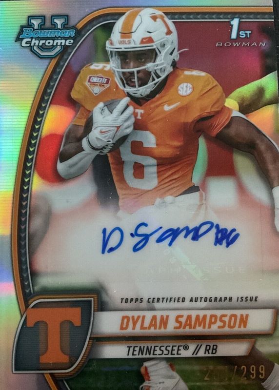 Dylan Sampson 2024 Bowman Chrome University 1st Refractor Auto /299 - Tennessee