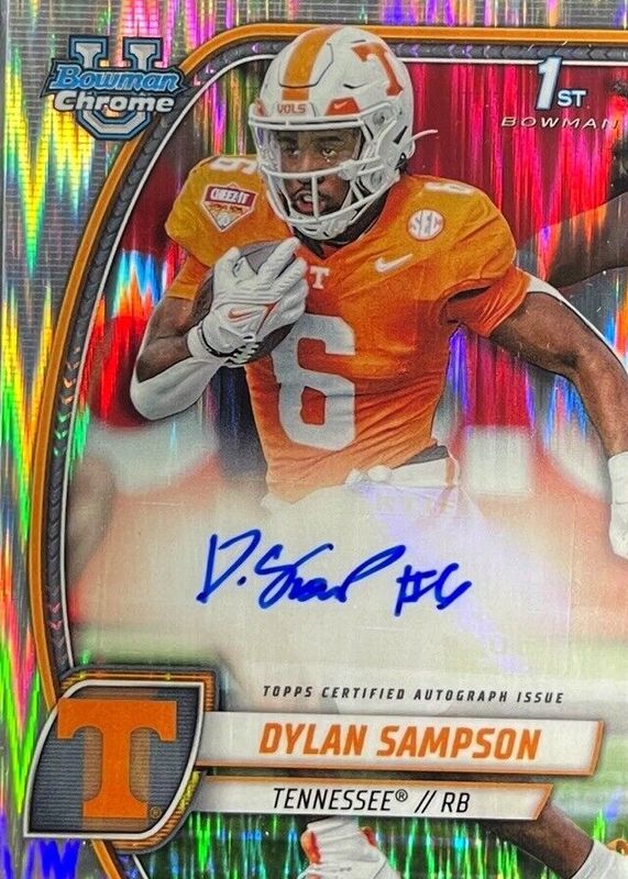 2024 Bowman Chrome University Dylan Sampson 1st Auto Stealth Refractor Tennessee