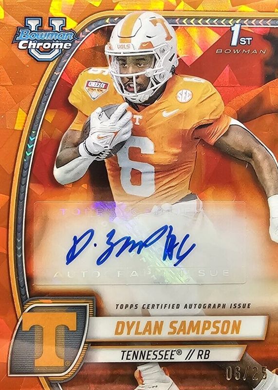 Dylan Sampson 2024 Bowman Chrome University Sapphire Edition #PA-DSA Prospect Auto - Orange /25 (1st) RAW Price Guide