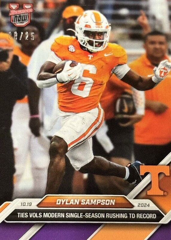 The Dylan Sampson 2024 Bowman U Now #30 Purple /25 card in Raw condition has not changed in price in the last 30 days and was last sold for $23.38 .