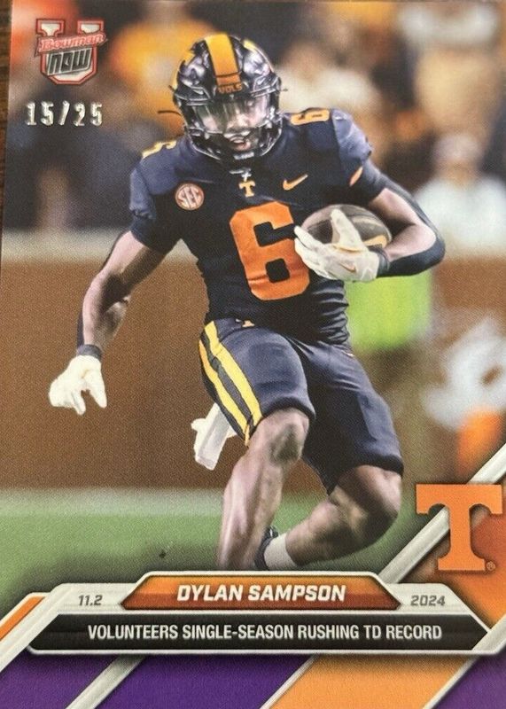 The Dylan Sampson 2024 Bowman U Now #35 Purple /25 card in Raw condition has not changed in price in the last 30 days and was last sold for $14.75 .