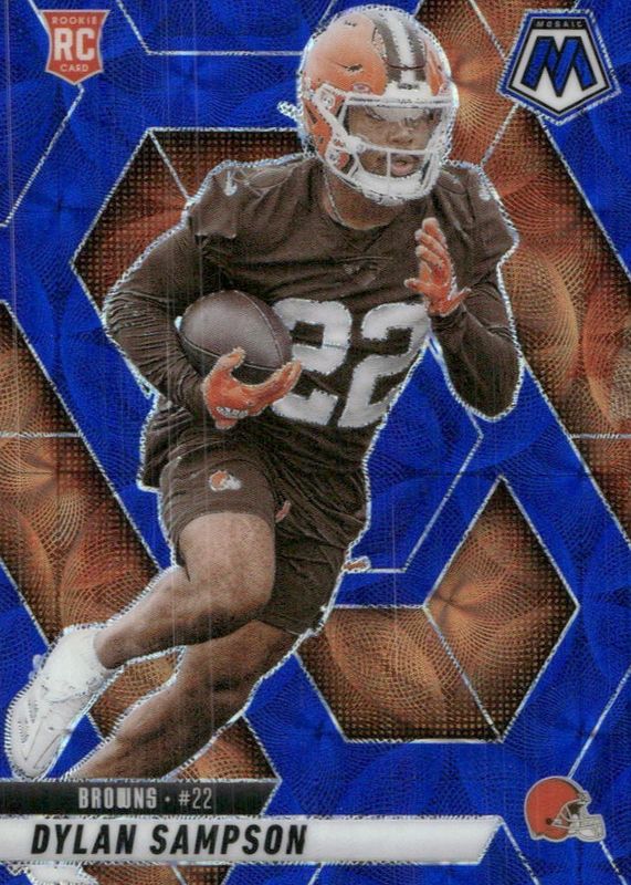 The Dylan Sampson 2025 Mosaic #355 Blue Scope Rookie card in Raw condition has moved down -$2.60 (-72.4%) in the last 30 days and was last sold for $0.99 .