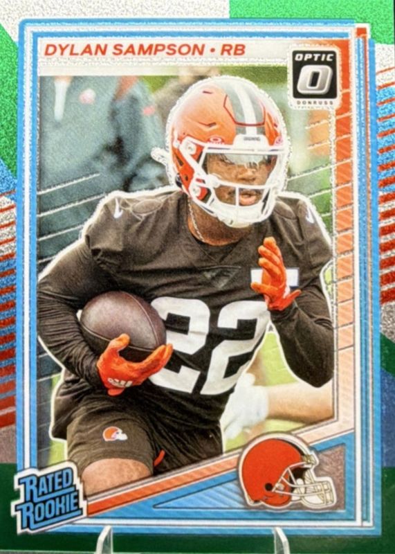 The Dylan Sampson 2025 Optic #238 Jazz /(SSP) Rookie card in Raw condition has not changed in price in the last 30 days and was last sold for $4.25 .
