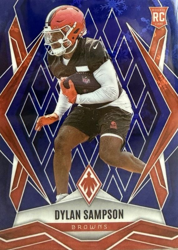 The Dylan Sampson 2025 Phoenix #250 Blue Hyper /199 Rookie card in Raw condition has not changed in price in the last 30 days and was last sold for $2.00 .