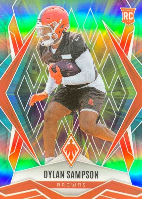 The Dylan Sampson 2025 Phoenix #250 ColorBurst /10 Rookie card in Raw condition has not changed in price in the last 30 days and was last sold for $5.50 .