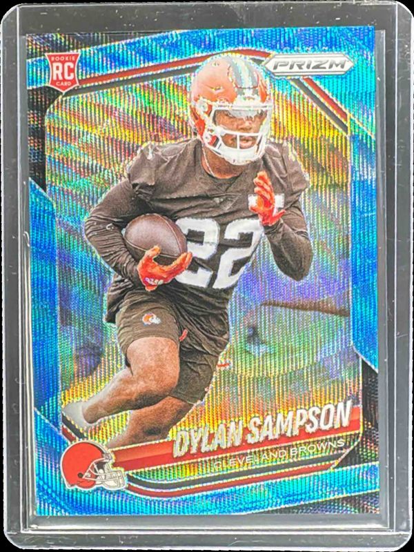 The Dylan Sampson 2025 Prizm #365 Blue Wave /230 Rookie card in Raw condition has moved up $1.74 (+77.3%) in the last 30 days and was last sold for $3.99 .