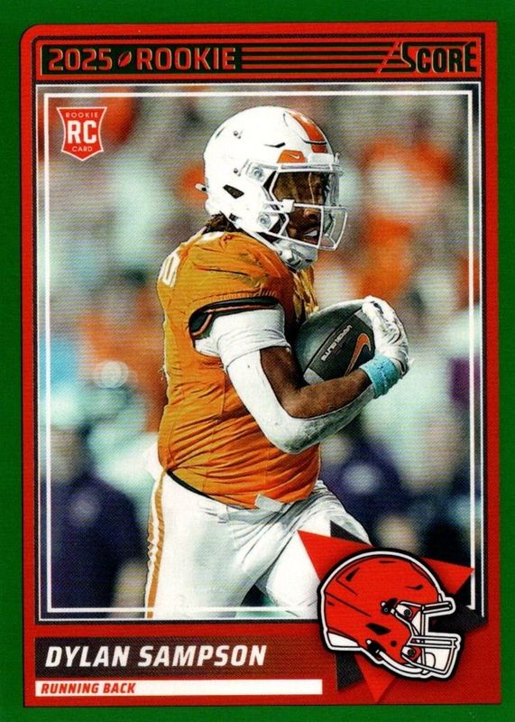 The Dylan Sampson 2025 Score #52 Green Rookie card in Raw condition has not changed in price in the last 30 days and was last sold for $1.69 .