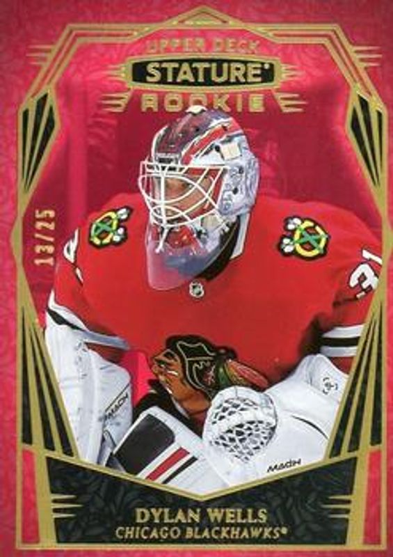 The Dylan Wells 2022 Upper Deck Stature #126 Design Variant Red /25 Rookie card is 1 of 18 Dylan Wells' card variations in the 2022 Upper Deck Stature set being tracked by Sports Card Investor, including Base /399, Green /99, Photo Variant /99, Red /75, and Photo Variant Green /66.