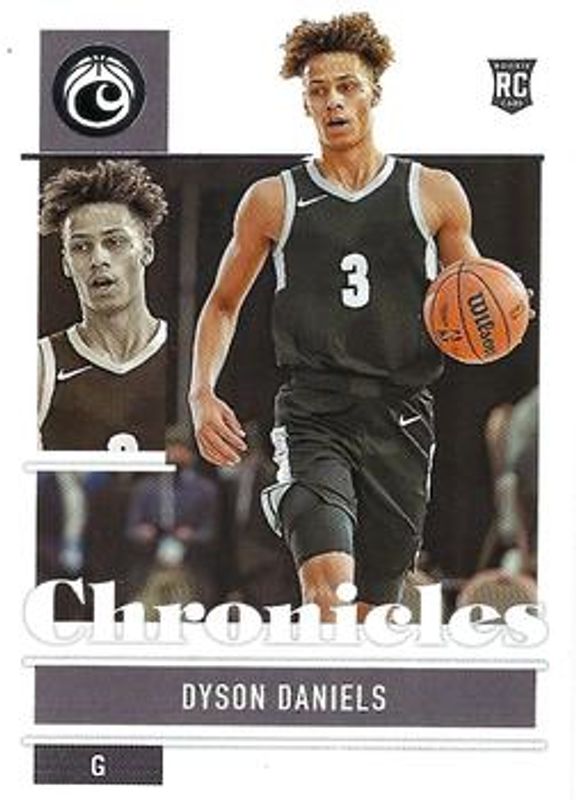 The Dyson Daniels 2022 Chronicles Draft Picks #7 Base Rookie card is 1 of 158 Dyson Daniels' card variations in the 2022 Chronicles Draft Picks set being tracked by Sports Card Investor, including Black, Bronze, Pink, Pulsar, and Red /149.