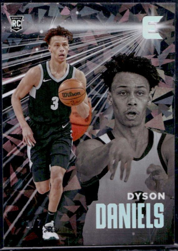 The Dyson Daniels 2022 Chronicles Draft Picks #7 Essentials - Cracked Ice /7 Rookie card is 1 of 158 Dyson Daniels' card variations in the 2022 Chronicles Draft Picks set being tracked by Sports Card Investor, including Base, Black, Bronze, Pink, and Pulsar.