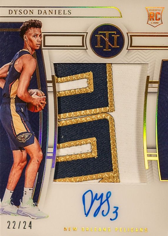 This card is 1 of 10 Dyson Daniels' card variations in the 2022 National Treasures set being tracked by Sports Card Investor, including Rookie Patch Auto /99, Rookie Patch Auto - Red /75, Rookie Patch Auto - Bronze /49, Rookie Patch Auto - Pink /25, and Rookie Patch Auto - Gold /10.
