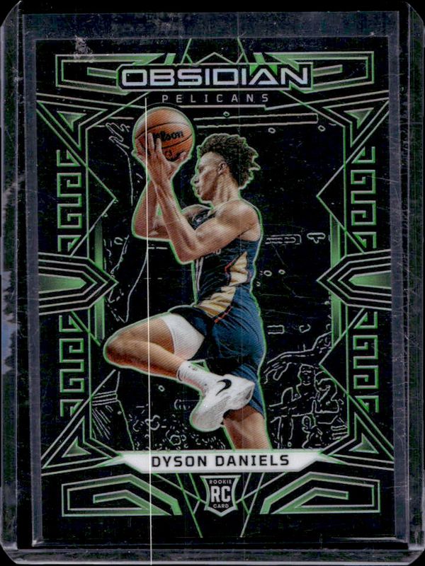 The Dyson Daniels 2022 Obsidian #179 Electric Etch Green /25 Rookie card is 1 of 61 Dyson Daniels' card variations in the 2022 Obsidian set being tracked by Sports Card Investor, including Electric Etch Asia, Electric Etch Neon Flood, Electric Etch Red Flood, Electric Etch White Pulsar, and Electric Etch Purple /75.