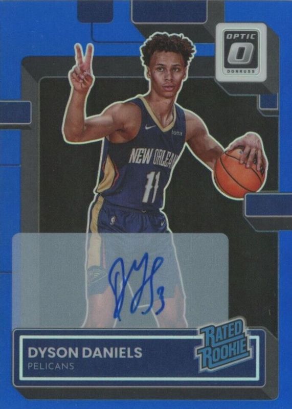 The Dyson Daniels 2022 Optic #250 Rated Rookie Signatures - Blue /49 card in Raw condition has not changed in price in the last 30 days and was last sold for $20.50 .