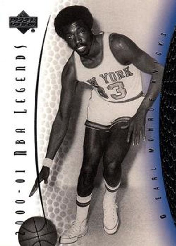 The Earl Monroe 2000 Upper Deck Legends #45 Base card is 1 of 4 Earl Monroe's card variations in the 2000 Upper Deck Legends set being tracked by Sports Card Investor, including Legendary Jerseys, Legendary Jerseys Autographed /50, and Legendary Signatures /10.