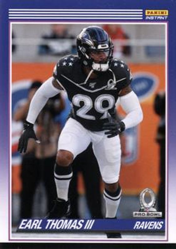 Earl Thomas III's Football cards are available in at least 9 sets. Earl Thomas III's biggest 7-day price movers are 2019 Panini Instant #P15 Pro Bowl, 2016 Optic #10 Donruss Threads - Pink, and 2016 Optic #10 Donruss Threads /100.