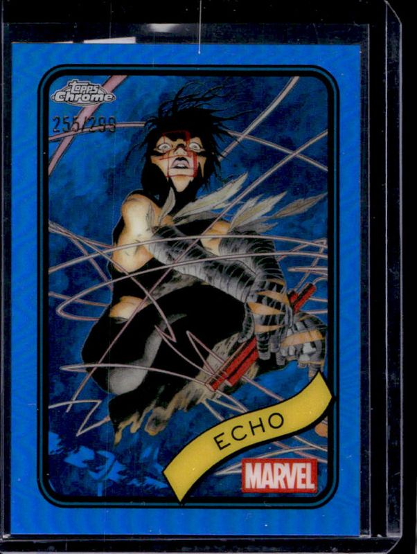 The Echo 2025 Topps Chrome #14 Blue Refractor /299 card is 1 of 23 Echo's card variations in the 2025 Topps Chrome set being tracked by Sports Card Investor, including Base, Refractor, Yellow Lava Refractor, Spider Web Refractor /399, and Blue & Green Shimmer Refractor /199.