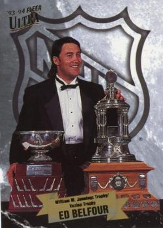 The Ed Belfour 1993 Fleer Ultra #1 Award Winners card is 1 of 2 Ed Belfour's card variations in the 1993 Fleer Ultra set being tracked by Sports Card Investor, including All Stars.
