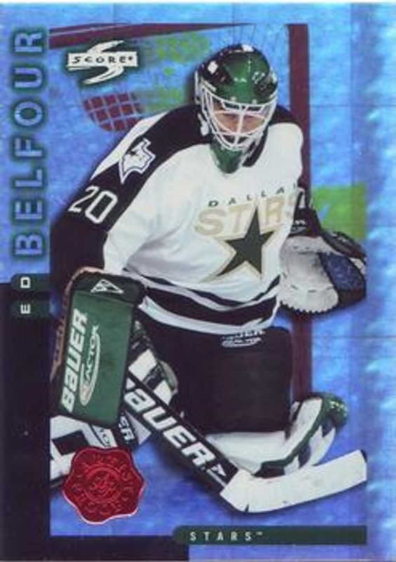 The Ed Belfour 1997 Score #20 Artist's Proofs card is 1 of 5 Ed Belfour's card variations in the 1997 Score set being tracked by Sports Card Investor, including Base, Dallas Stars Score Sheet, Golden Blades, and Net Worth.