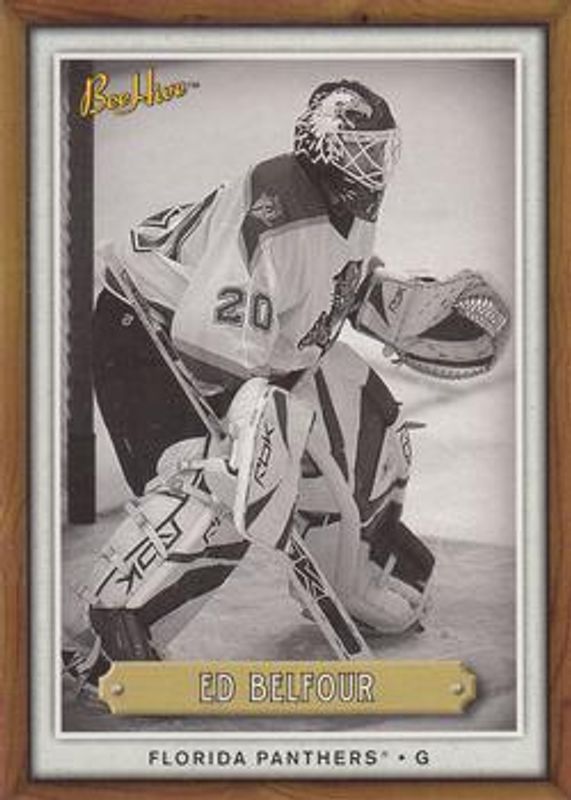 The Ed Belfour 2006 Upper Deck Beehive #57 Wood card is 1 of 9 Ed Belfour's card variations in the 2006 Upper Deck Beehive set being tracked by Sports Card Investor, including Base, 5x7 Photo Cards, 5x7 Variation, Blue, and Gold.