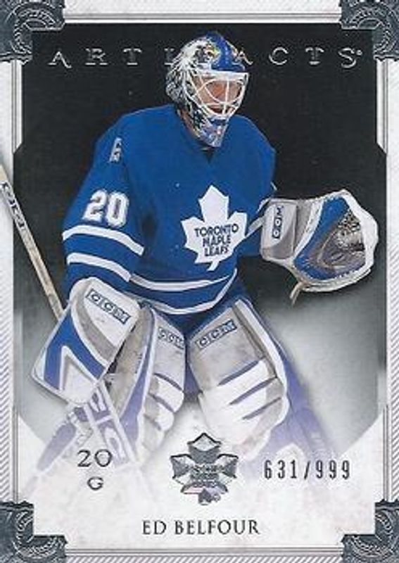 The Ed Belfour 2013 Upper Deck Artifacts #111 Base /899 card is 1 of 16 Ed Belfour's card variations in the 2013 Upper Deck Artifacts set being tracked by Sports Card Investor, including Ruby /299, Emerald /99, Sapphire /85, Spectrum /25, and Black /5.
