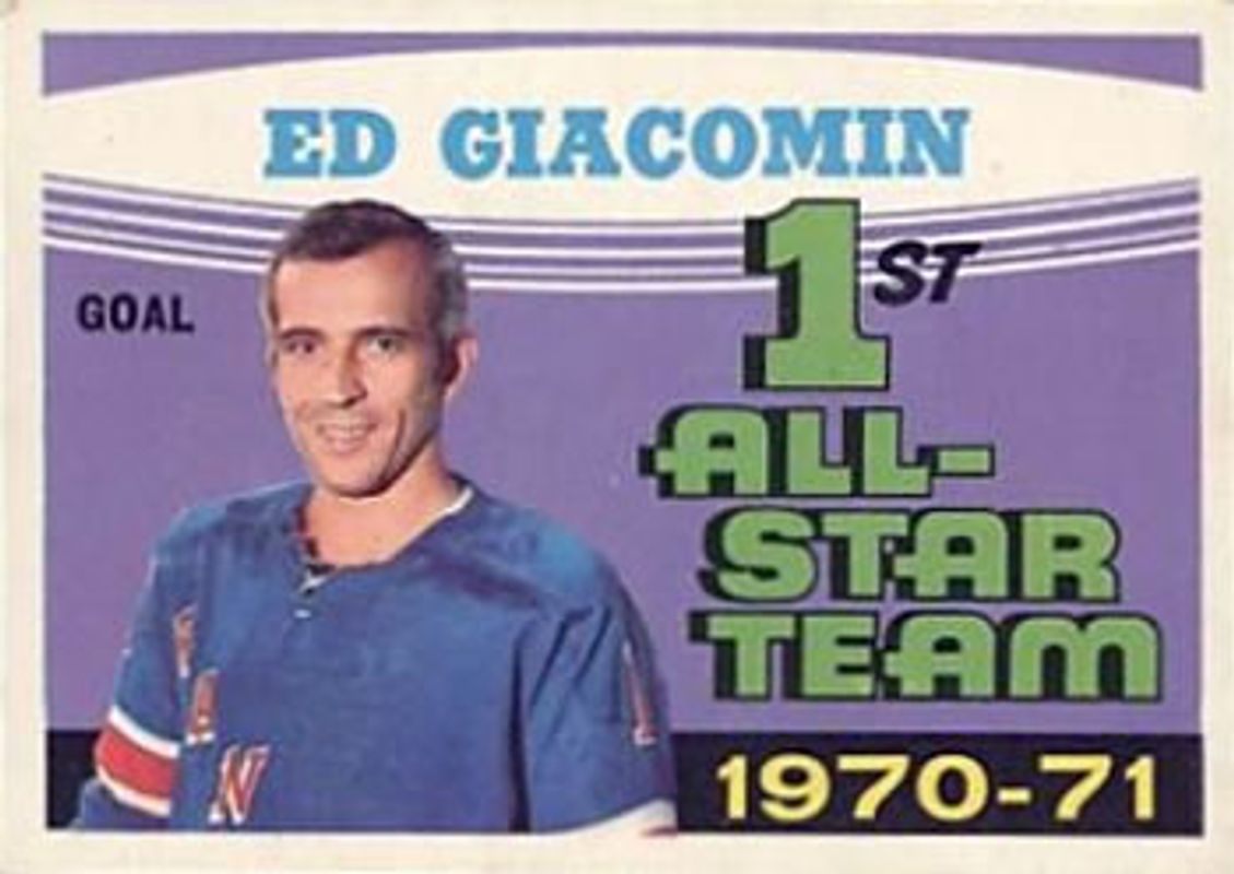The Ed Giacomin 1971 O-Pee-Chee #250 Base card is 1 of 4 Ed Giacomin's card variations in the 1971 O-Pee-Chee set being tracked by Sports Card Investor, including Base, Booklet, and Booklet - French.
