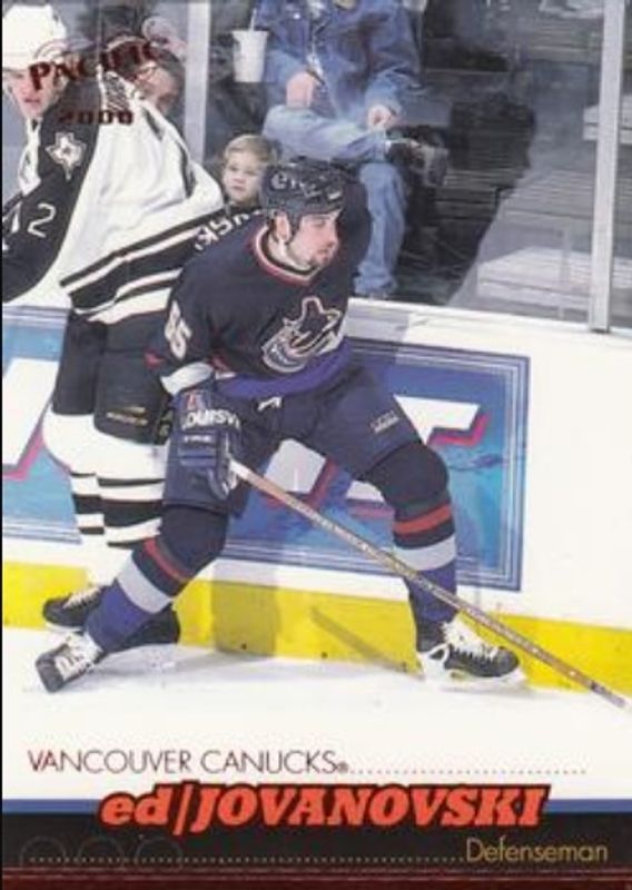 The Ed Jovanovski 1999 Pacific #424 Red card is 1 of 7 Ed Jovanovski's card variations in the 1999 Pacific set being tracked by Sports Card Investor, including Base, Emerald Green /199, Gold /199, Copper /99, and Ice Blue /75.