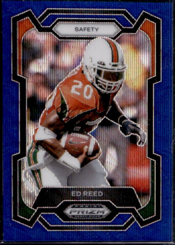 The Ed Reed 2024 Prizm Draft Picks #5 Blue Wave /249 card is 1 of 69 Ed Reed's card variations in the 2024 Prizm Draft Picks set being tracked by Sports Card Investor, including Base, Green, Purple Wave, Red Ice, and Ruby Wave.