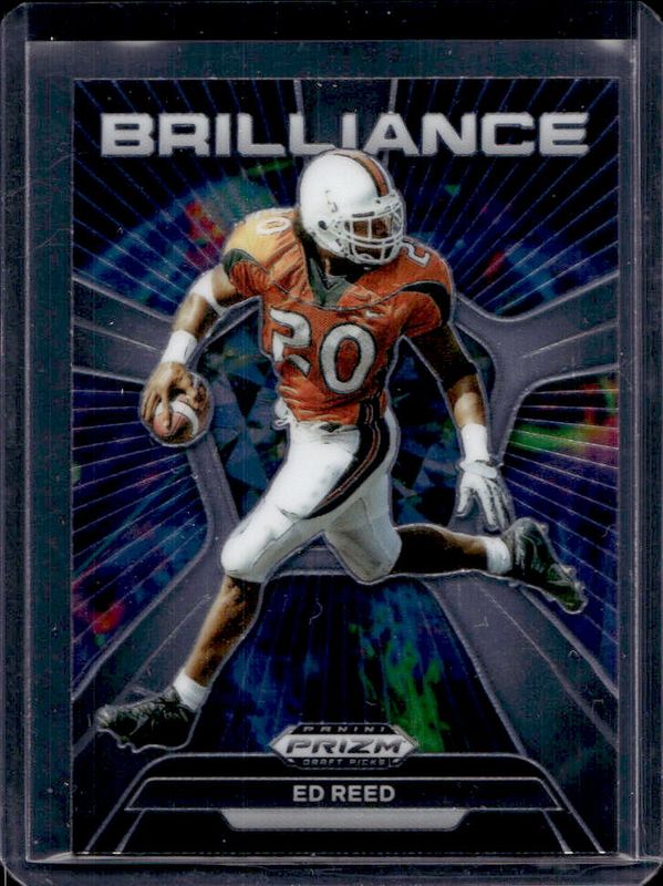 The Ed Reed 2024 Prizm Draft Picks #BR-ER Brilliance card is 1 of 69 Ed Reed's card variations in the 2024 Prizm Draft Picks set being tracked by Sports Card Investor, including Base, Green, Purple Wave, Red Ice, and Ruby Wave.