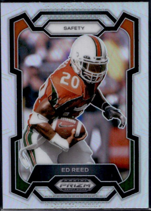 The Ed Reed 2024 Prizm Draft Picks #5 Silver card is 1 of 69 Ed Reed's card variations in the 2024 Prizm Draft Picks set being tracked by Sports Card Investor, including Base, Green, Purple Wave, Red Ice, and Ruby Wave.