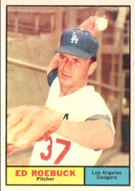 The Ed Roebuck 1961 Topps #6 Base card is 1 of 2 Ed Roebuck's card variations in the 1961 Topps set being tracked by Sports Card Investor, including Stamps.