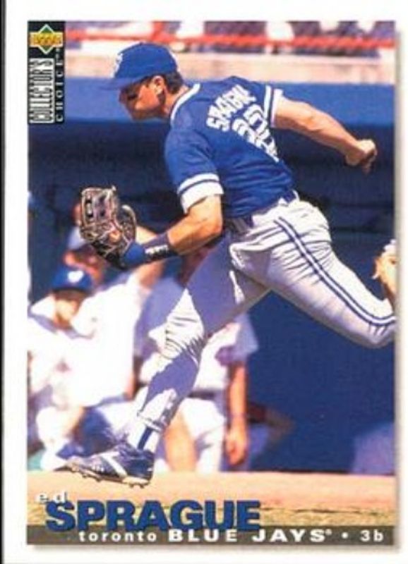 The Ed Sprague 1995 Upper Deck Collector's Choice #142 Base card is 1 of 3 Ed Sprague's card variations in the 1995 Upper Deck Collector's Choice set being tracked by Sports Card Investor, including Gold Signatures, and Silver Signatures.