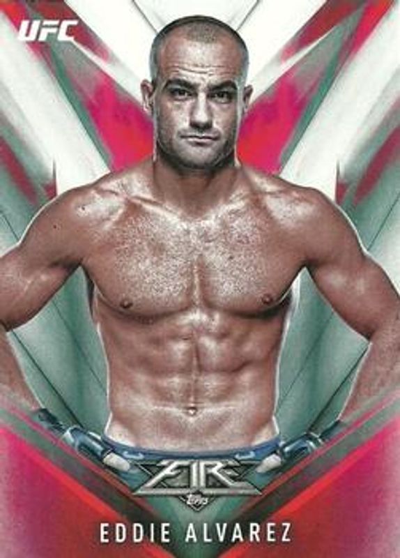 The Eddie Alvarez 2017 Topps Fire UFC #45 Base card is 1 of 7 Eddie Alvarez's card variations in the 2017 Topps Fire UFC set being tracked by Sports Card Investor, including Red Hot /142, Blue Flame /25, Inferno /1, Autographs /149, and Autographs - Blue Flame /25.