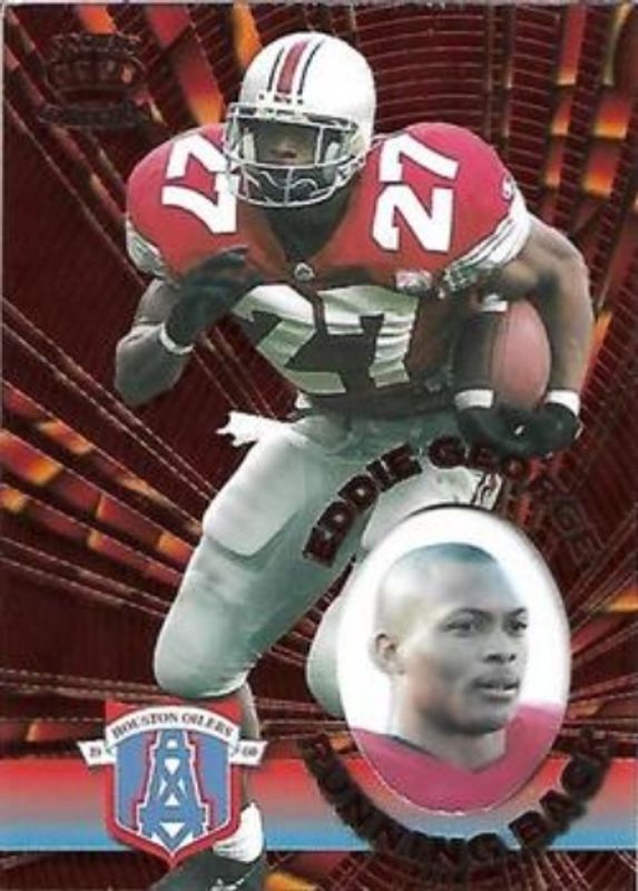 The Eddie George 1996 Pacific Invincible #I-56 Bronze Rookie card is 1 of 4 Eddie George's card variations in the 1996 Pacific Invincible set being tracked by Sports Card Investor, including Base, Platinum Blue, and Silver.