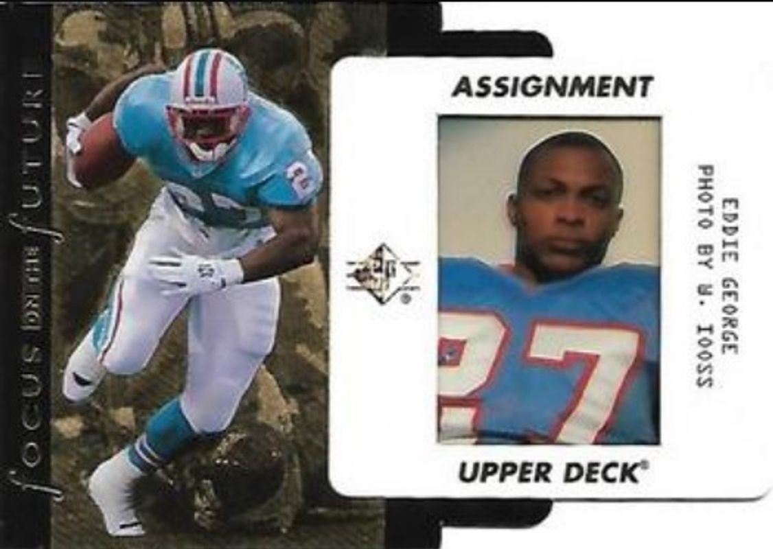 The Eddie George 1996 SP #F11 Focus on the Future Rookie card is 1 of 5 Eddie George's card variations in the 1996 SP set being tracked by Sports Card Investor, including Base, Explosive, Holoview, and Holoview Die-Cut.